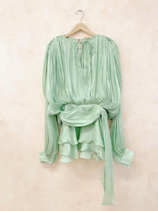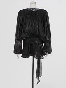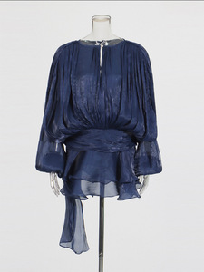 フレンチエレガントなヨーロッパとアメリカのクロスボーダーパフスリーブプリーツフリルスカート2025新しいプリーツデザインドレス