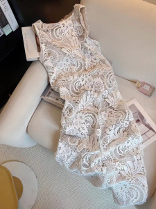 とても美しいドレス 2025 新しいスタイル今年人気のフレンチ中空レースノースリーブベストドレス