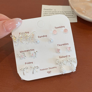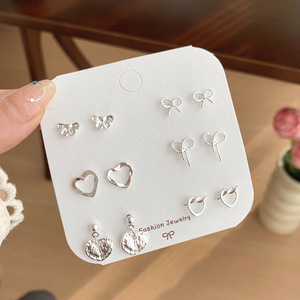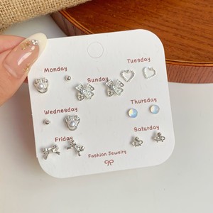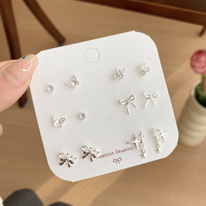 ブルーダイヤモンドプレーンシルバー小さなイヤリングセット女性用シルバー針ニッチライト高級デザイン絶妙で多用途な学生イヤリング 1 週間