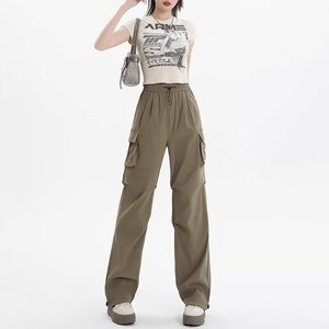 OOTD風ワークウェア風カジュアルパンツ レディース 2025新作 ゆったりストレート ワイドレッグパンツ レディースファッション ネット人気アイテム ロングパンツ