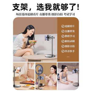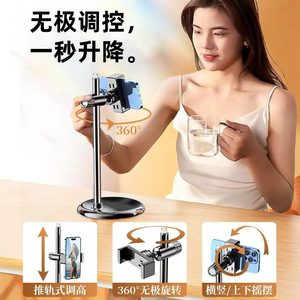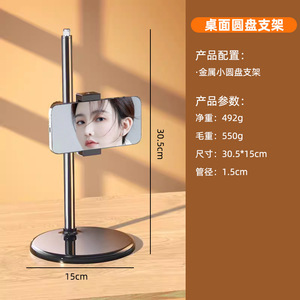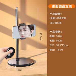スマホデスクトップスタンド ライブ配信撮影用 回転式 上撮り撮影 自由伸縮 メタルディスク Bluetooth自撮り棒