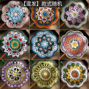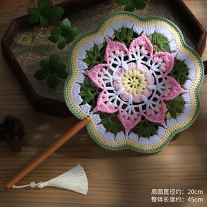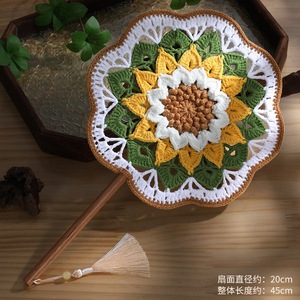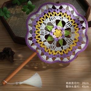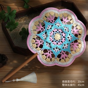 手編み扇子、配色古風扇子、毛糸かぎ針編みDIY素材パック、国慶節中国扇子