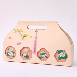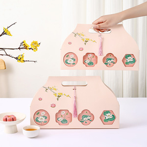 2025年月餅包装箱新作、流心卵黄餅月餅ギフトボックス、持ち運び可能な4個入り中秋節ギフトボックス、カスタムメイド