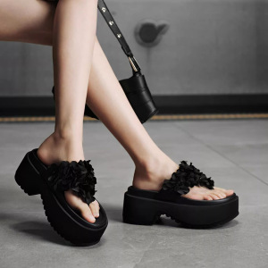 Zhao Yiと同じスタイル~2025年新作夏用アウターウェア滑り止めスリッパ女性用インス厚底スリッパアウターウェアサンダル