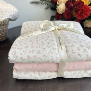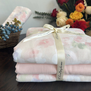 全棉印花双层纱四件套纯棉床单被套三件套双人床品套件ins风田园
