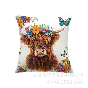 跨境亚马逊希音春季牦牛花卉蝴蝶沙发客厅靠背装饰靠枕抱枕靠垫套