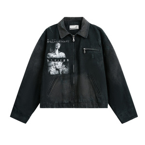 Jiayiku メンズ 2025 秋アメリカンストリートファッションブランドヘビーウォッシュワークジャケットデトロイトキャンバスジャケット
