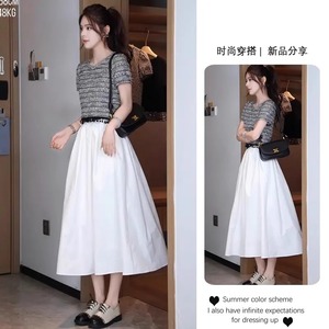 今年人気のデザイン、女性用ラウンドネックストライプTシャツ、タッセル万能スカート、ツーピーススーツ