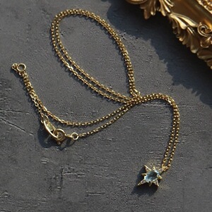ヒトヒトデフレンチブルージルコン八芒星ネックレスレディースライトラグジュアリーレトロ鎖骨チェーンシンプルハイエンドネックレス