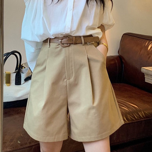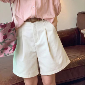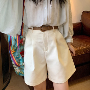 女性用ホワイトカーゴショーツ2025年夏新作5点パンツ薄手小柄ハイウエストAラインワイドレッグミッドパンツ