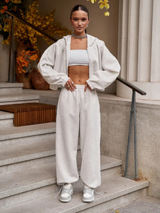 国境を越えた貿易カジュアルファッションスポーツスーツ無地長袖ジッパーウエストパーカー伸縮性パンツ 2 点セット
