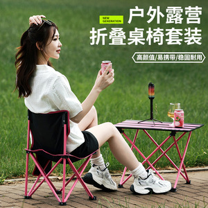 Shandu クライアント アウトドア キャンプ 折りたたみテーブルと椅子 キャンプ ピクニック 軽量 エッグロールテーブル ポータブルテーブルと椅子 装備一式