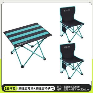 【3点セット】青と黒の配色スクエアテーブル+青と黒の配色折りたたみ椅子*2