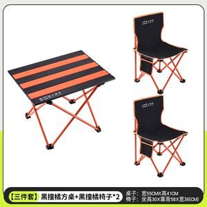 【3点セット】オレンジと黒の配色スクエアテーブル+オレンジと黒の配色折りたたみ椅子*2