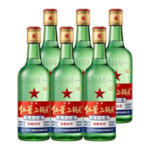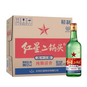 北京产地红星二锅头52度绿瓶500ml*6瓶/12瓶清香型口粮光瓶白酒