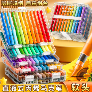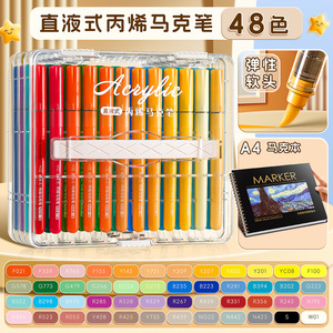 ストレート液体子供用小学生洗える不透明色積み重ね可能な水彩ペン絵筆 48 色アクリルマーカーペン