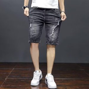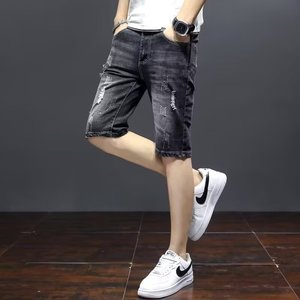 时尚薄款弹力牛仔短裤男破洞修身直筒青少年五分中裤男5分马裤潮