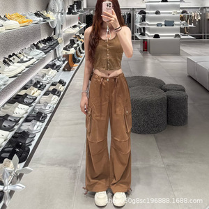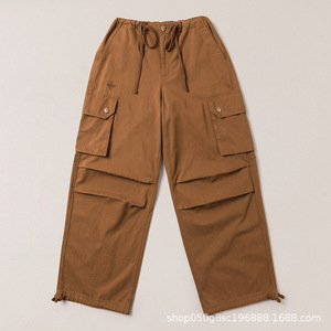SKクロスクラシックレトロパラトルーパーパンツ、調節可能なドローストリング、プリーツ入り、ファッショナブルなワークウェア、ワイドレッグパンツ、25夏新作