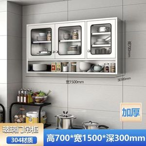 304不锈钢加厚【拉丝工艺】-304玻璃门吊柜150厘米宽