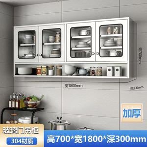 304不锈钢加厚【拉丝工艺】-304玻璃门吊柜180厘米宽