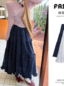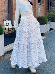優しい風花柄スカート女性のための春、秋、夏 2025 新しいハイウエストスリム A ラインスカート傘スカート白ケーキスカート