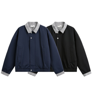 アメリカンレトロクリーンフィットショート千鳥格子ステッチワークジャケット男性と女性のためのルーズハリントンジャケットトレンディ