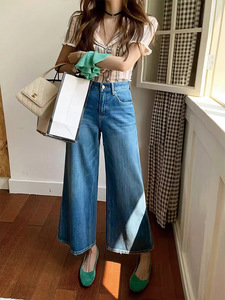 牛仔裤女2025新款高腰奶奶裤夏薄款小个子浅蓝色九分阔腿宽松显瘦