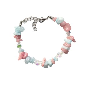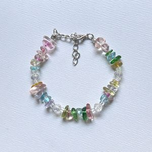 跨境热卖天然水晶碎石手链不规则七彩女士龙虾扣延长链手镯手工