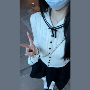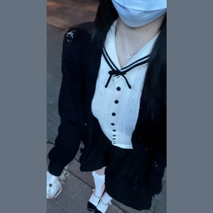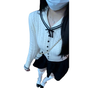 韓国の柔らかくワックスのような白いネイビーカラーのニットセーター女性の春のニッチデザインスリムフィットと超見栄えの良いトップ