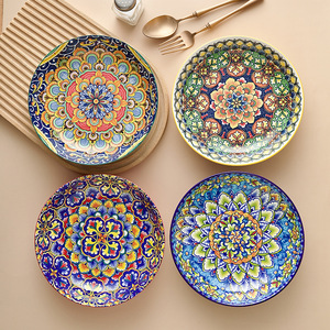 クロスボーダーフレンチボーンチャイナ洋食プレートボヘミアンスタイル手描きプレートスープボウルホテル浅いプレートライト高級ボーンチャイナプレート