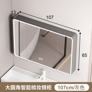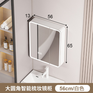 新しいアーク型バスルームミラーキャビネットバスルームバスルームミラーキャビネットスマートライト収納キャビネット壁掛け化粧鏡キャビネット付き