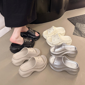 厚底高さ増加スリッパ女性の夏のアウターウェア 2025 新しい軽量下駄小さなビーチサンダル