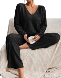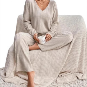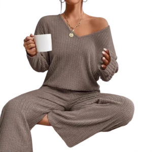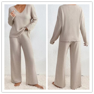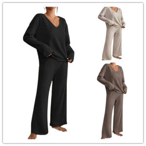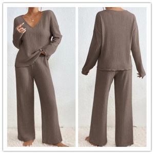 25種類のAmazon欧米秋冬人気商品、起毛長袖セットアップ、Vネックゆったりカジュアル、欧米風レディース