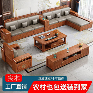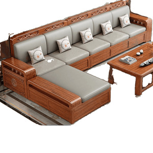 ウォールナット無垢材ソファリビングルームホームユニットダブル3人用コーヒーテーブル組み合わせ冬と夏の収納ソファ