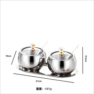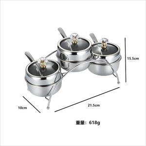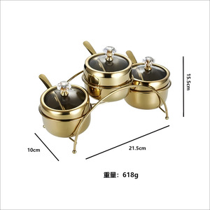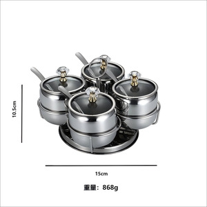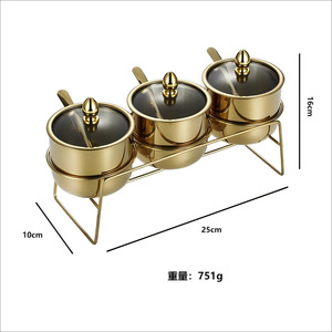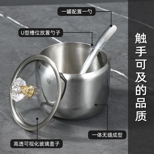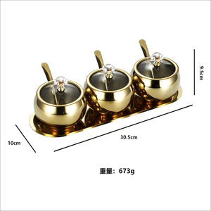 304不锈钢调味罐加厚金色带勺可视玻璃盖佐料罐家用厨房多味套装