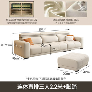 2025 新しいモダンでシンプルなレザーソファリビングルームコンビネーションホームフルセットストレートサイズハイエンドライトラグジュアリー