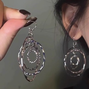 甘くてクールなホットガールスタイルのレトロな多層ハンマーパターンイヤリング女性用、軽い高級感、ニッチ、ハイエンド、大きなサークルイヤリング、イヤリング