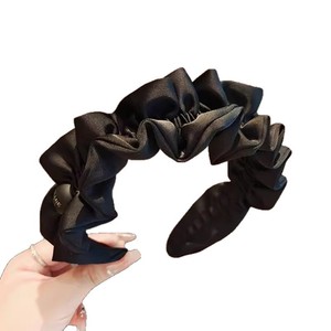 女性用ブラックプリーツヘッドバンド2025新しいスタイルの高頭蓋顔見せ小さなヘッドバンドファッショナブルなヘアピンヘッドバンド