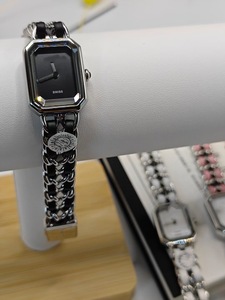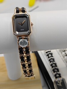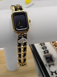 Xiangjia Xiaoxiangfeng 中古シュガーキューブレディース腕時計クォーツブラックゴールドチェーン織りベルトスクエアレトロファッションメーカー卸売