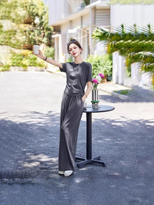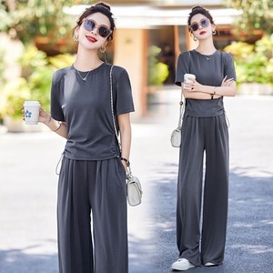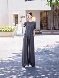 女性のためのカジュアルファッションスーツ 2025 夏の新しいスタイルのハイエンド外国スタイル痩身と年齢を軽減する半袖ワイドレッグパンツ 2 点セット