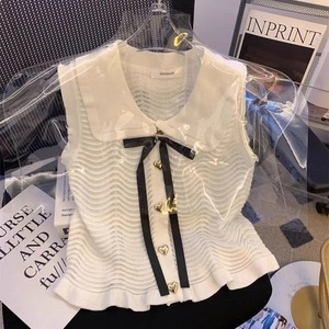 甜美蝴蝶结系带娃娃领拼接小背心女夏季新款爱心纽扣设计百搭上衣