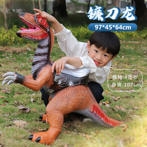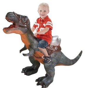 子供用恐竜乗用玩具、乗れる柔らかいゴム製ティラノサウルス・トリケラプト動物モデル、啓発サウンドエフェクト、インタラクティブ