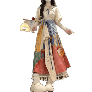 ゴッホの油絵風の不規則なスカートのセット、女子学生向けの芸術的なトップス付きの新しい夏のスタイル