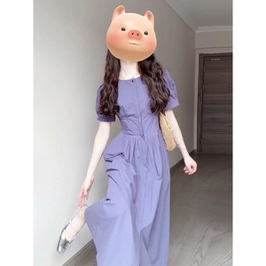 女性のためのフレンチパープルドレス夏2025新しいスタイルのニッチデザインウエストロングスカート