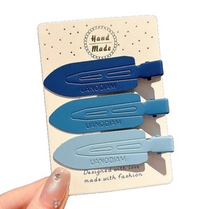 6#ブルーグラデーションオーバル波型ヘアクリップ3個セット