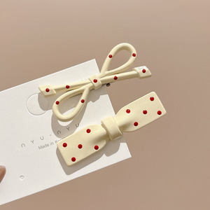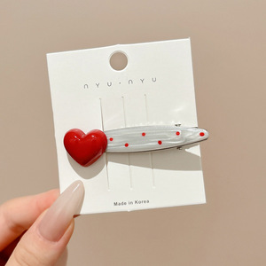 1#レッドラブ水玉ウェーブクリップ-6.5cm