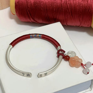 平和と喜びのブレスレット オープンレッドロープ+小花ペンダント 30g 【国家検査証明書付き++