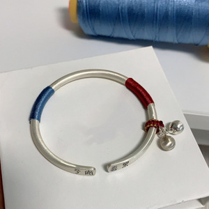 平和と喜びのブレスレット オープン青赤ロープ+ベルペンダント 25g [国家検査証明書付き+