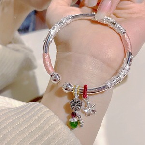 本物の平安と喜びのスターリングシルバー 999 ブレスレット女性用レトロヤングスタイル古代固体純銀ブレスレットガールフレンド用