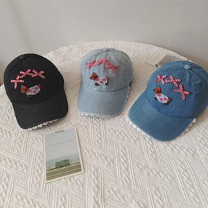 2025 クロスボーダー爆発ソーセージ犬子供デニムキャップ漫画ミッキー女の赤ちゃん写真野球帽旅行日よけ